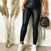 Ženske tajice u izgledu kože s ukrasnim gumbima Anita crna
