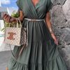 Daljša poletna obleka s pasom Maruša olivno zelena